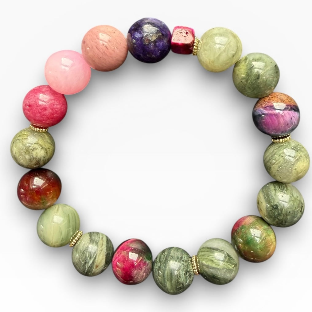 Fuchsia flowers grow boldly, suspended in motion and alive with energy. This bracelet celebrates vibrancy, creativity, and the courage to stand out while remaining rooted in natural beauty.
