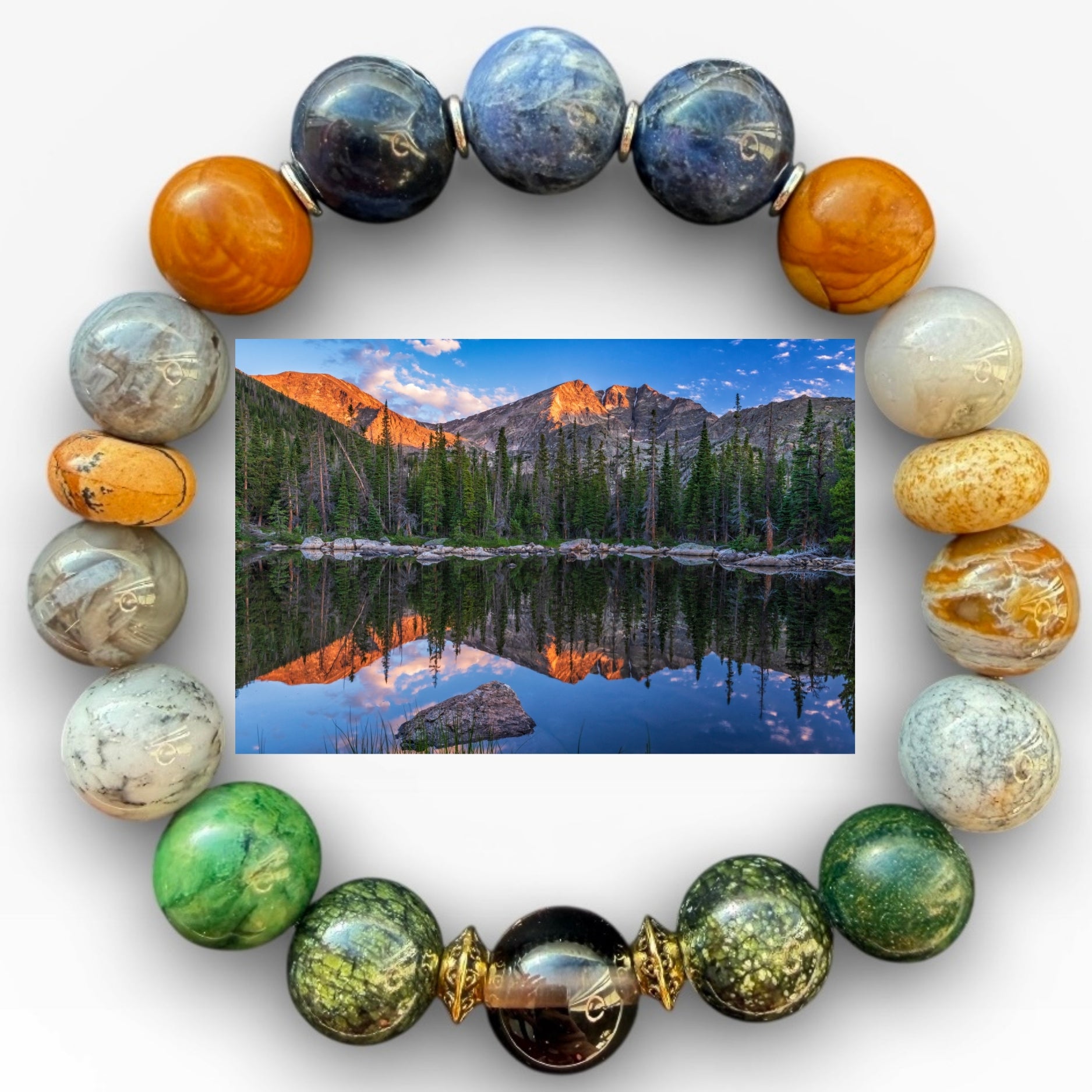 Keywords: Sierra Nevada bracelet, mountain bracelet, nature inspired jewelry, hiking bracelet, outdoor adventure jewelry, grounding gemstone bracelet, wilderness bracelet, inner strength jewelry, boho mountain bracelet, granite peak bracelet, handmade gemstone bracelet, rugged beauty jewelry, brave and steady bracelet, mountain rhythm bracelet, adventure gift for her