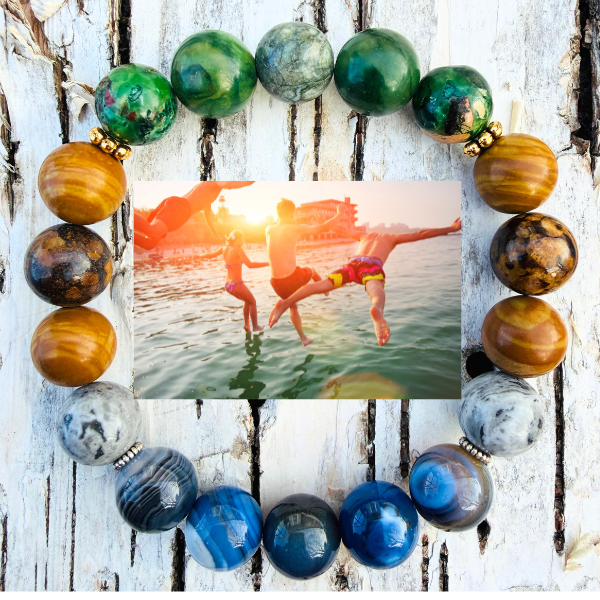 Keywords: lake days bracelet, joy and togetherness jewelry, agate and jade bracelet, summer by the water gift, handmade nature memory bracelet, peaceful moments, laughter and love jewelry