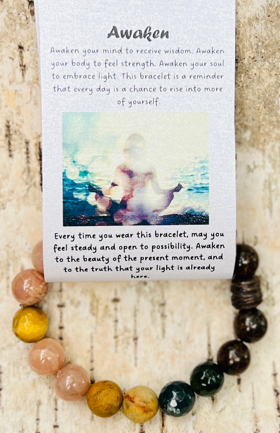 Awaken your mind to receive wisdom. Awaken your body to feel strength. Awaken your soul to embrace light. This bracelet is a reminder that every day is a chance to rise into more of yourself.