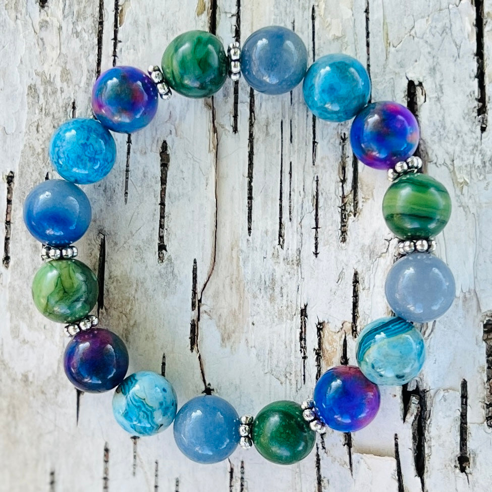 Stones: Galaxy Jade, Blue Crazy Lace Agate, Blue Aventurine, African Green Jade