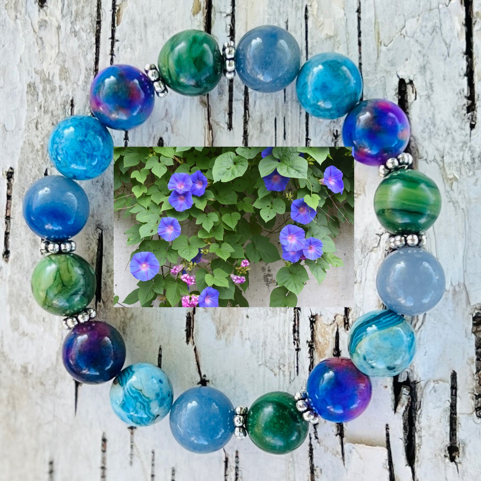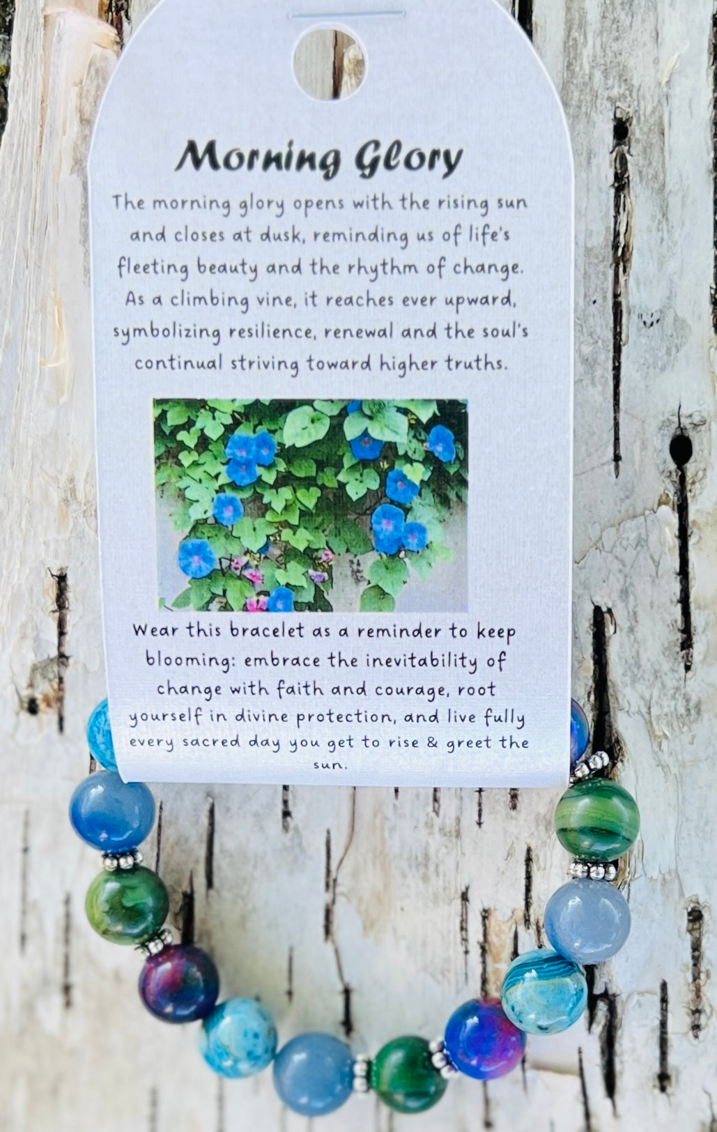 Keywords: Morning Glory bracelet, morning glory vine jewelry, morning glory gemstone bracelet, morning glory memorial gift, morning glory flower bracelet, morning glory jewelry