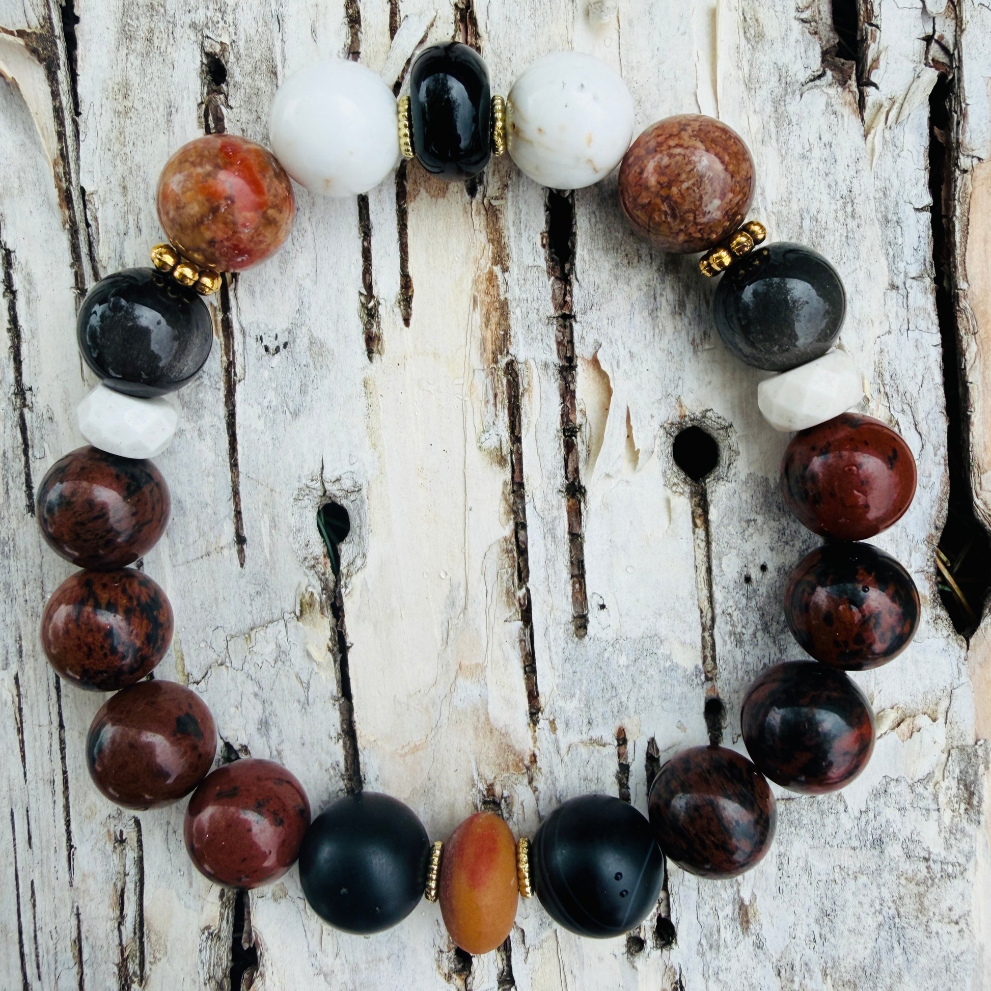Stones: flower agate, white turquoise, onyx, obsidian, agate, mahogany jasper, amazonite