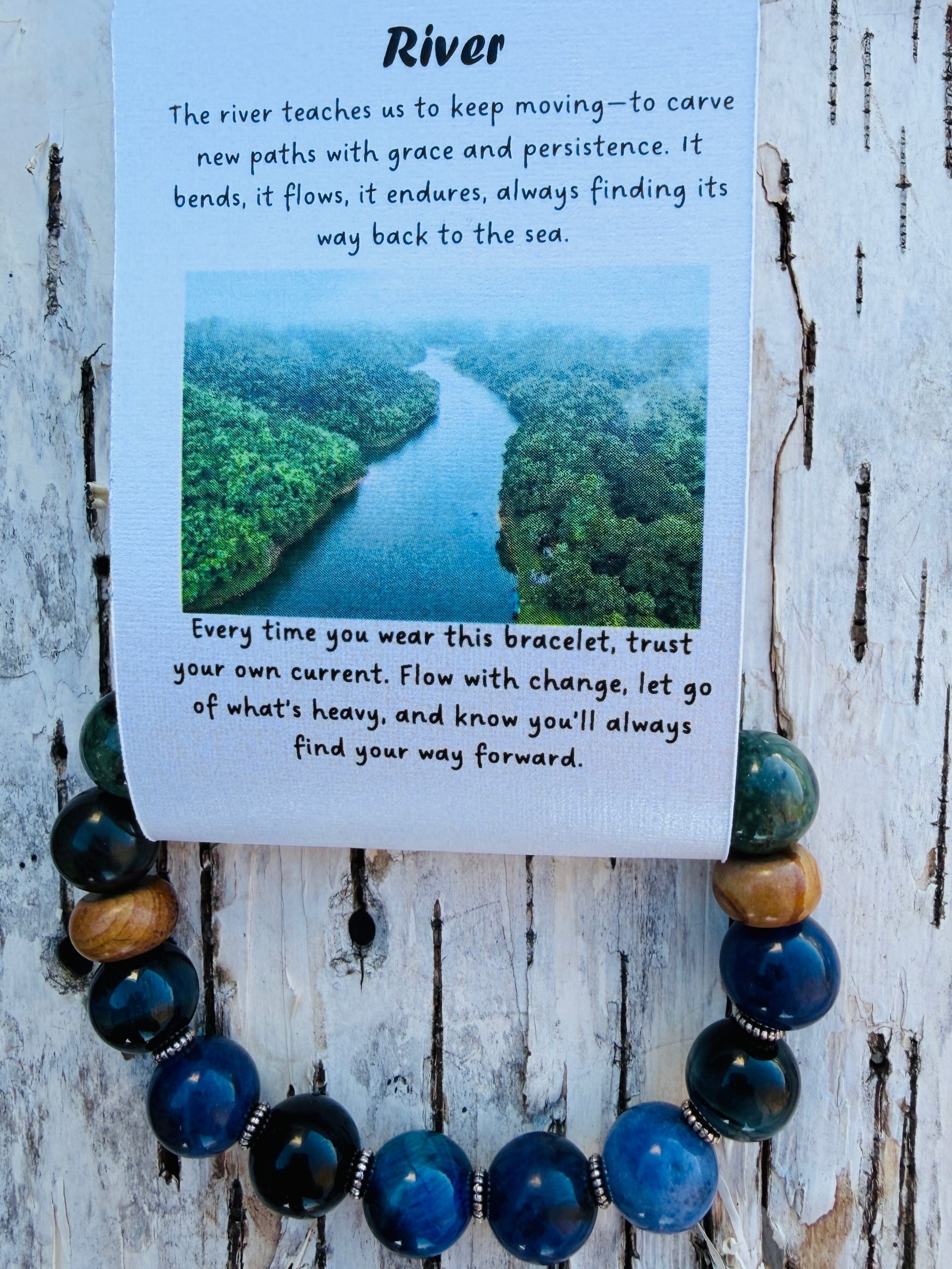 Keywords: river bracelet, flow with change jewelry, resilience bracelet, grounding gemstone bracelet, nature inspired bracelet, water element jewelry, emotional healing bracelet, boho gemstone bracelet, handmade beaded bracelet, mindful jewelry, letting go bracelet, persistence and grace jewelry, river current bracelet, inner strength bracelet, calming bracelet