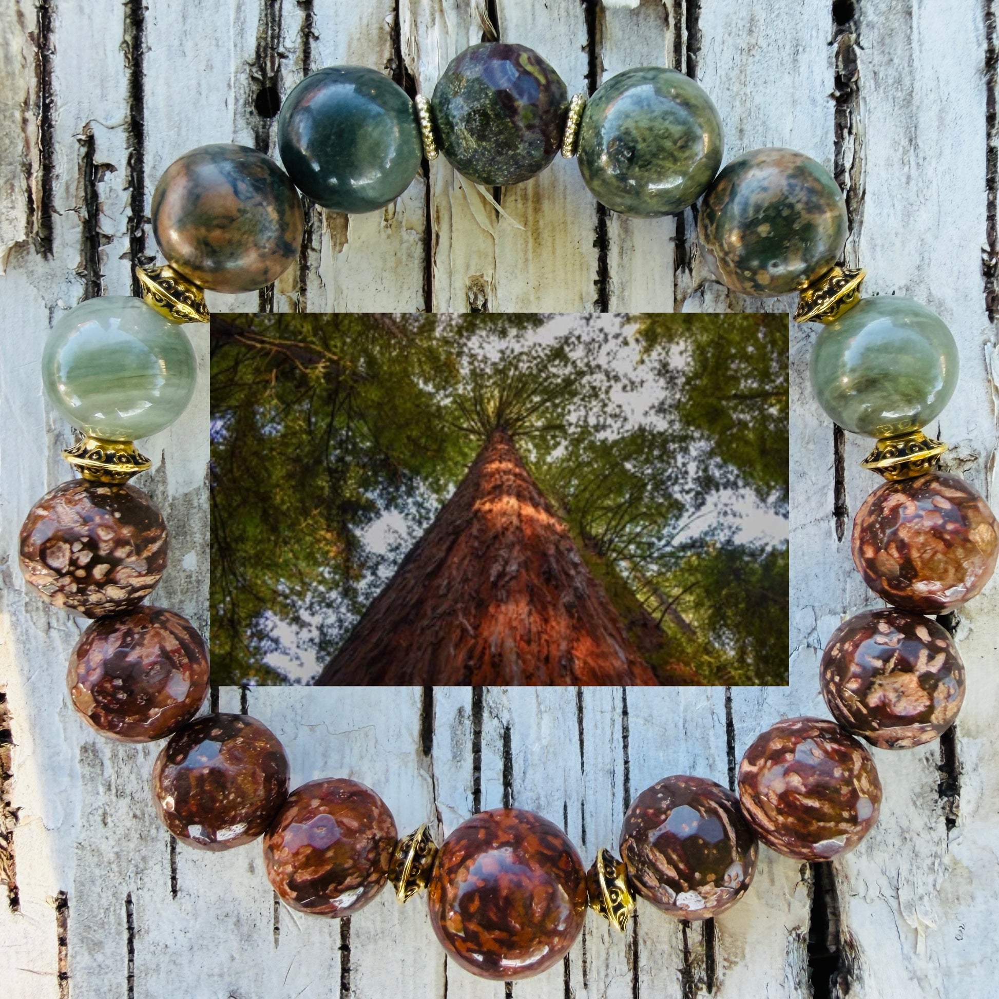 Keywords: Sequoia bracelet, strength and resilience bracelet, nature-inspired bracelet, tree of life bracelet, grounding gemstone bracelet, sequoia jewelry, strength reminder bracelet, connection bracelet