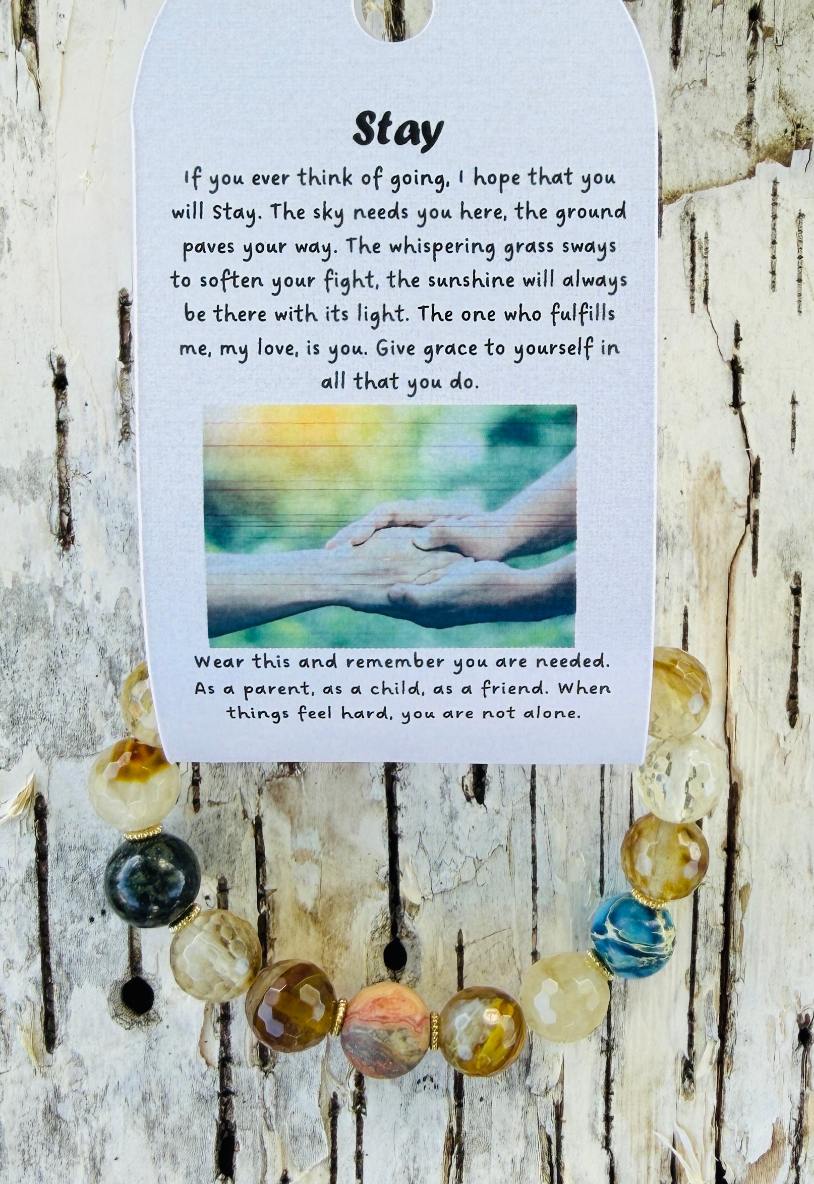 A portion of proceeds for each bracelet will be donated to Suicide Awareness Voices of Education (SAVE). About SAVE: "In August 1989, three Minneapolis couples joined together with a common cause. Each had lost a child to suicide. Together, they created SAVE to educate the public about suicide prevention and to serve as a resource and voice for suicide loss survivors. Now, for 36 years, SAVE has been a leading national organization working to prevent suicide."